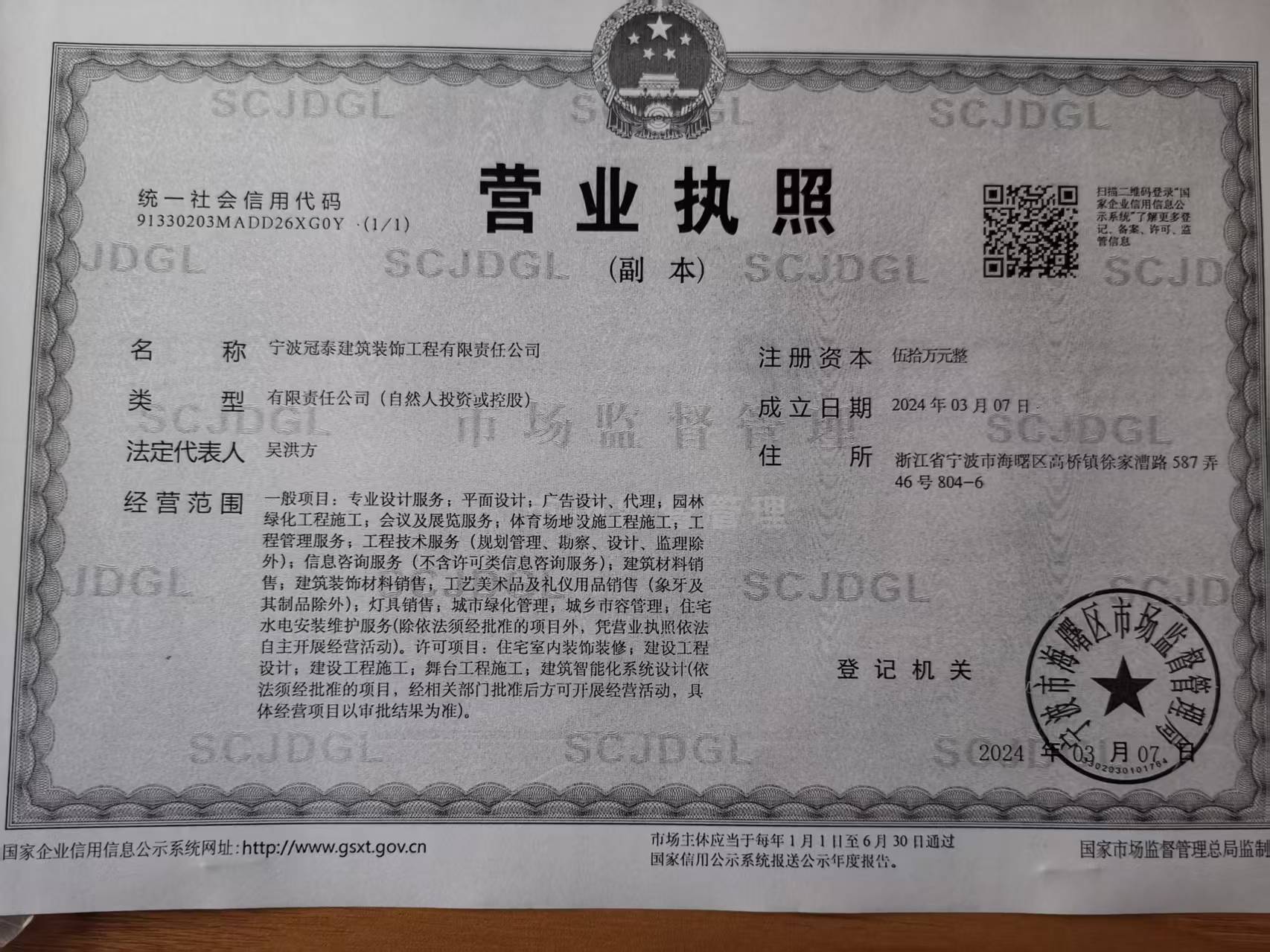 宁波冠泰建筑装饰工程有限责任公司